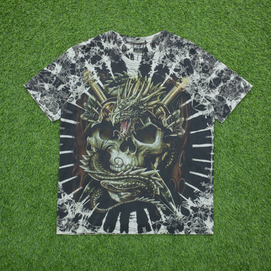 WiLD Skull Dragon Tie Dye Double Sided AOP Graphic Halloween T-Shirt - L