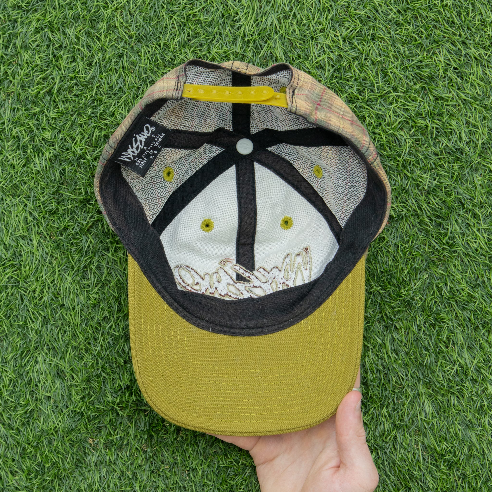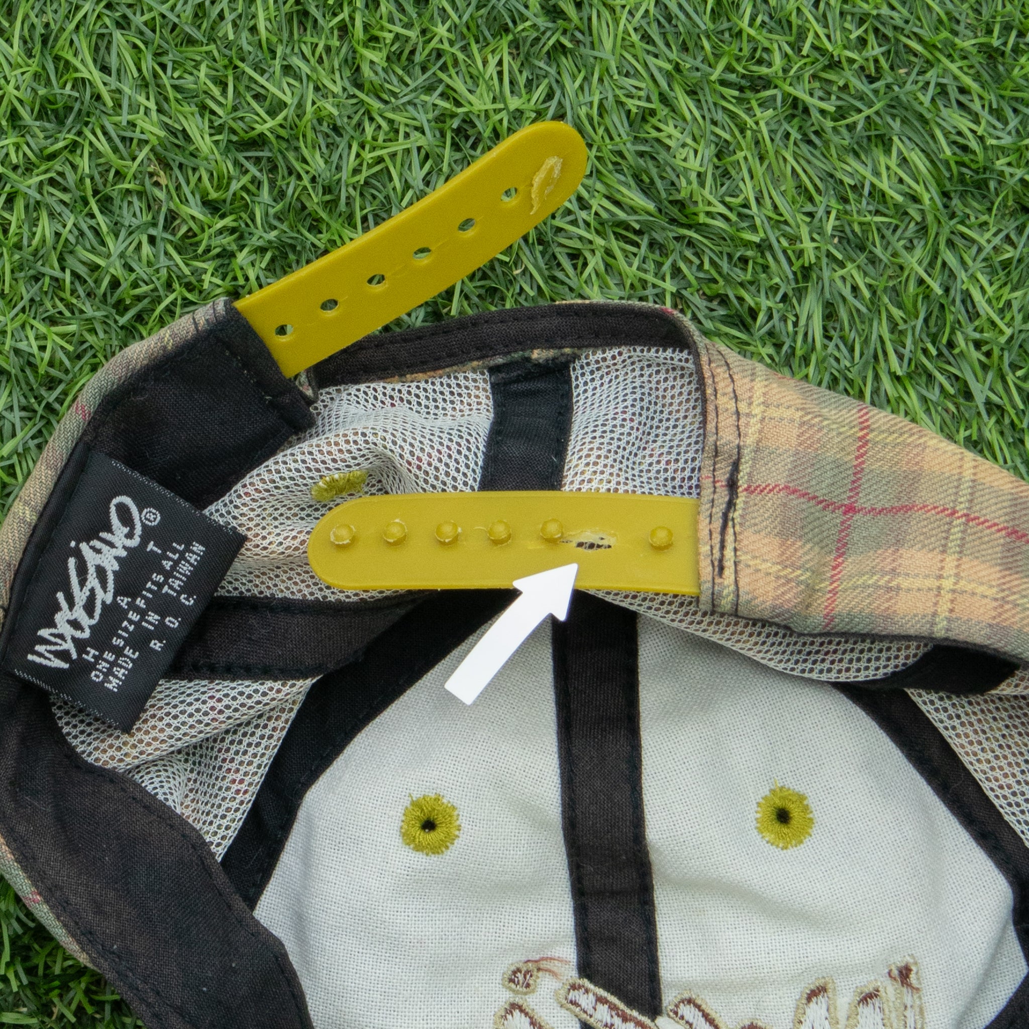 8/10 Condition, minimal wear, few pulled threads, slight damage to snapback strap (see pictures), although doesn’t effect its use, good condition.
