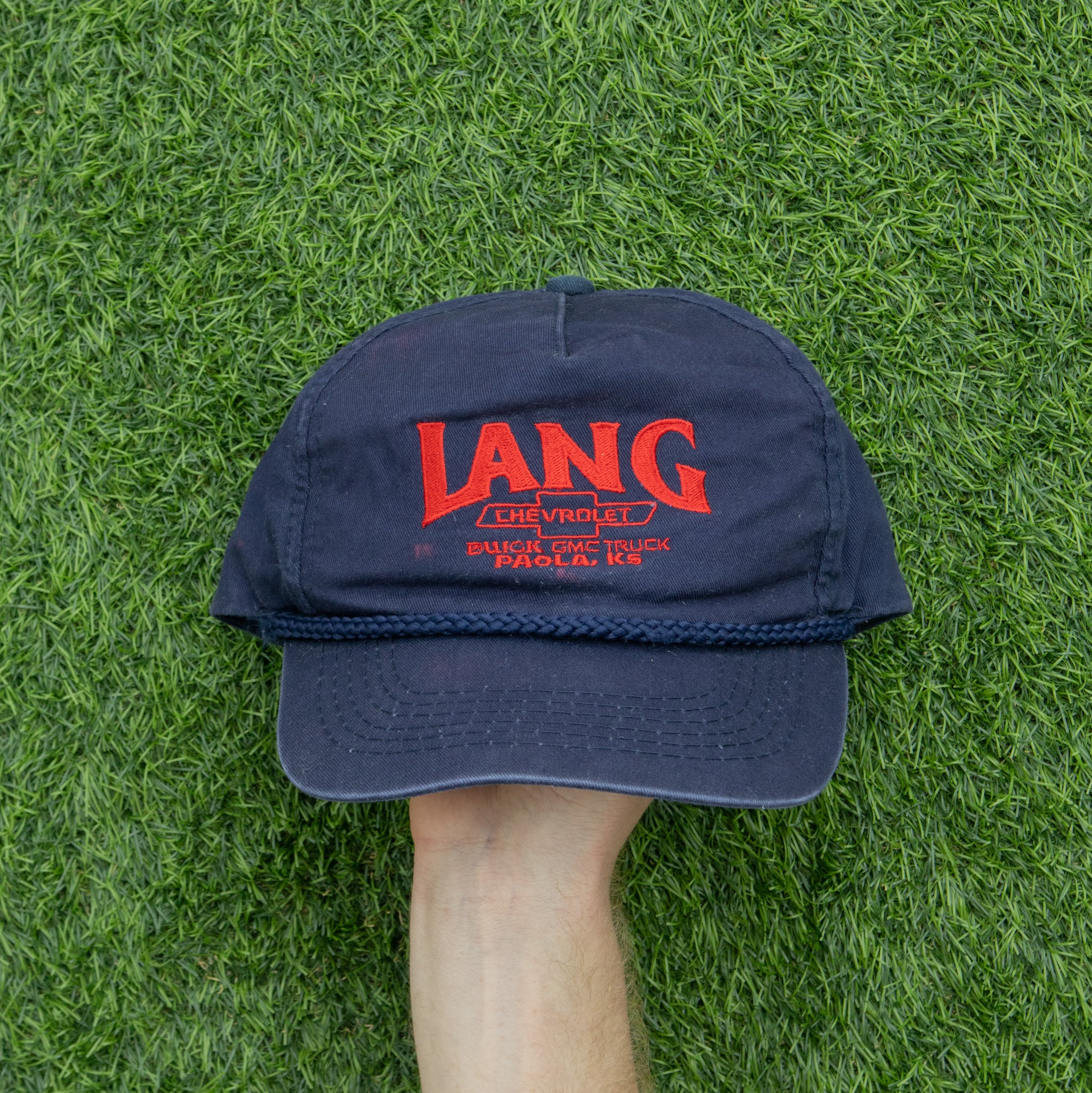 Lang Chevrolet Buick GMC Truck Embroidered Paola, KS Automobile Dealership Promotional Rope Trucker Snapback Cap - One Size