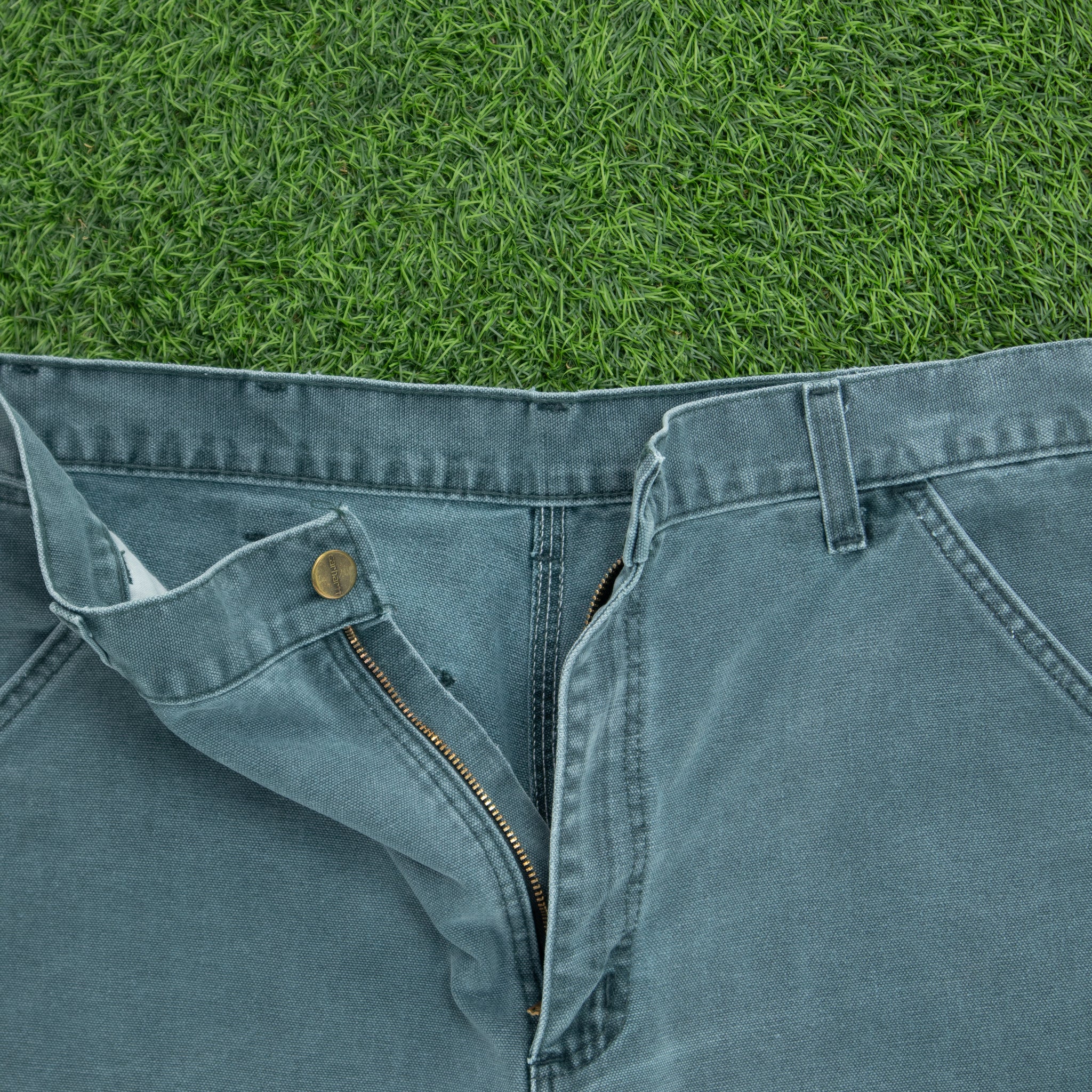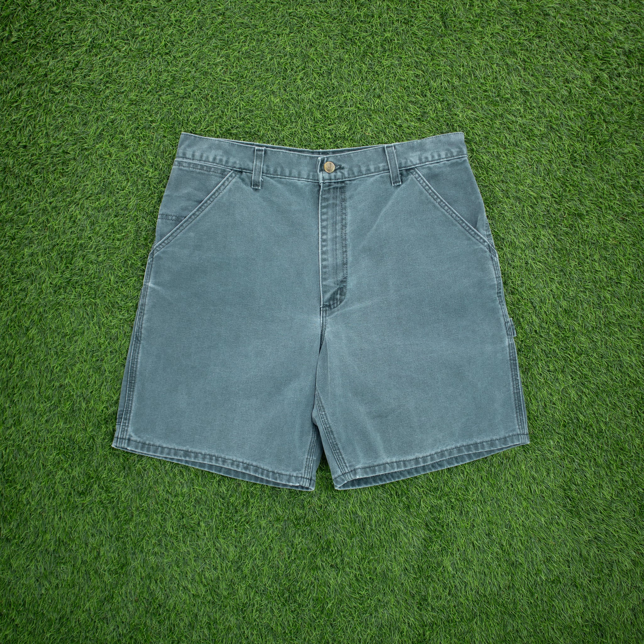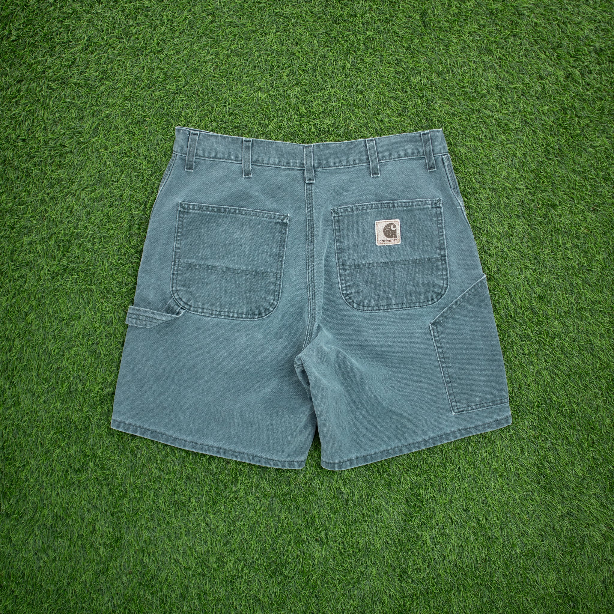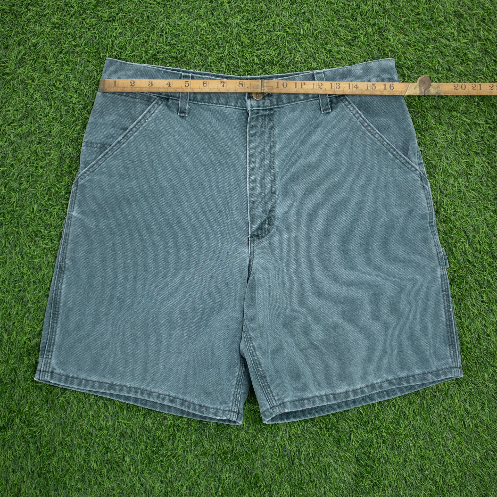 Carhartt Carpenter Workwear Medium Wash Denim Teal Jort Shorts - 32”